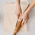 3. Razvaljajte tijesto i izrežite ga na pravokutnike. Na svaki pravokutnik stavite malo fila od višanja.